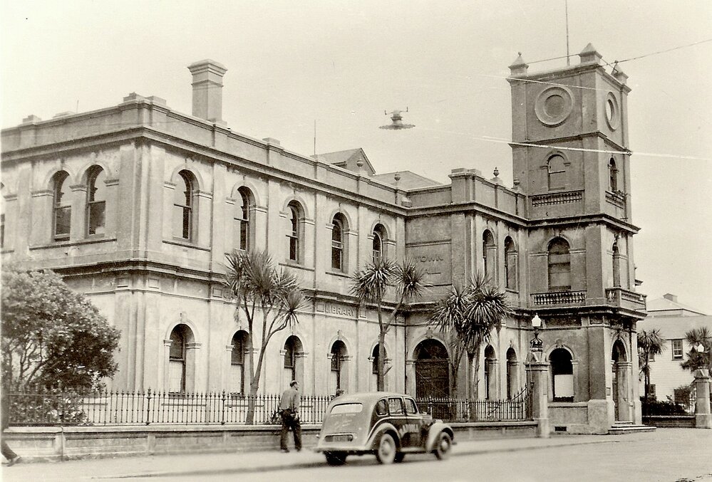 Greymouth Town Hall - Present site of Greymouth Library. Burnt down 1947.