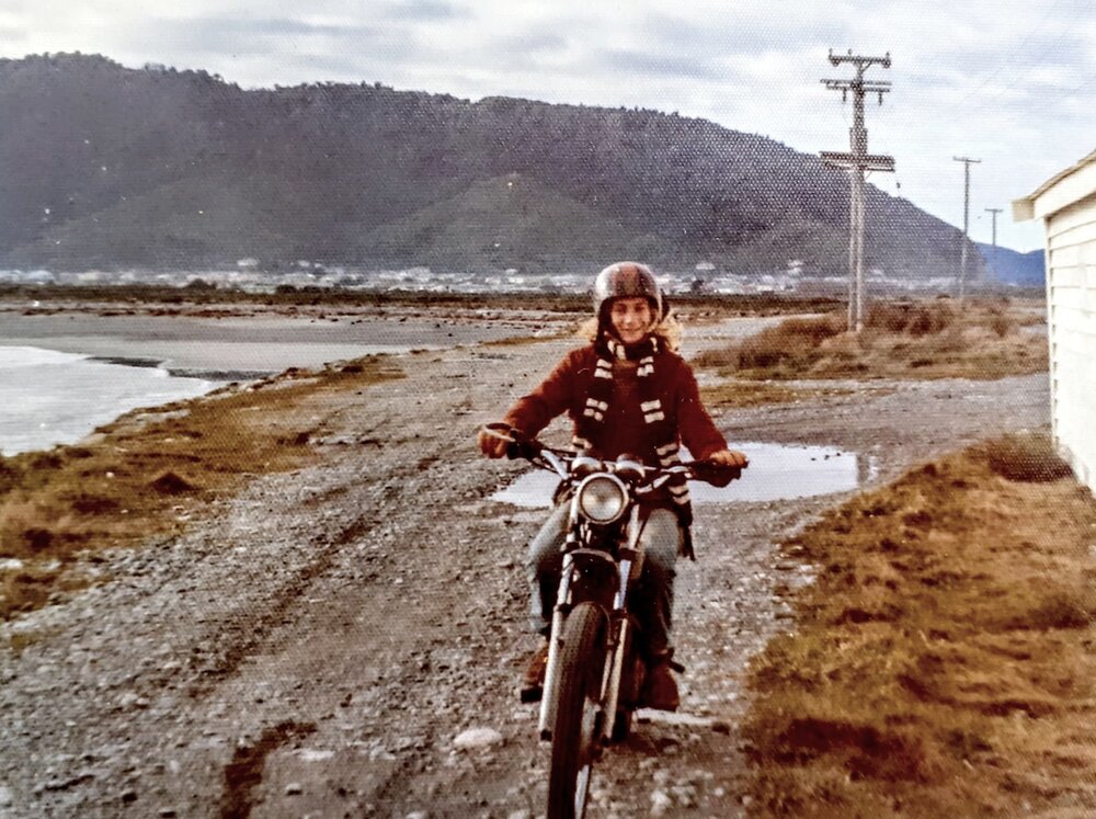 West Coast New Zealand History (11th Dec 2022). Cobden Tiphead with Kenny Oliver on the bike and the Kahuna Board clubhouse before we got it.1975 .. In Website West Coast New Zealand History. Retrieved 2nd Apr 2026 20:44, from https://westcoast.recollect.co.nz/nodes/view/31691