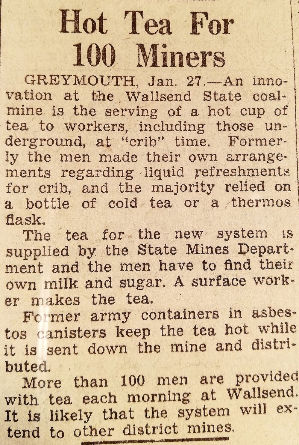 West Coast New Zealand History (7th Jan 2023). Hot tea for 100 Miners, Wallsend . 1949.. In Website West Coast New Zealand History. Retrieved 2nd Apr 2026 13:11, from https://westcoast.recollect.co.nz/nodes/view/31781