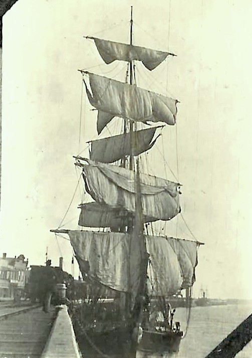 Barque White Pine sailed to its berth in the Grey River .ca .1922.