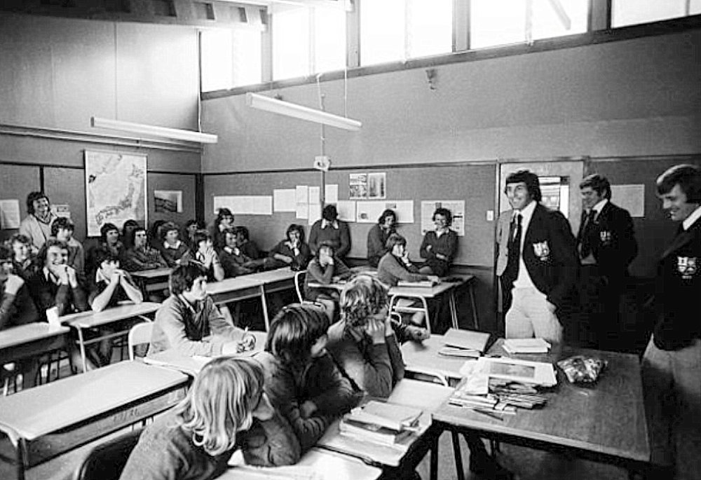 British Lions make a visit to a Westport School , June 1977.