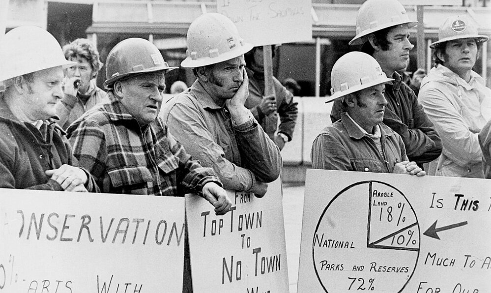 West Coast New Zealand History (26th Mar 2023). West Coast Sawmillers protesting to retain the timber industry in the region. 1977.. In Website West Coast New Zealand History. Retrieved 2nd Apr 2026 09:39, from https://westcoast.recollect.co.nz/nodes/view/31852