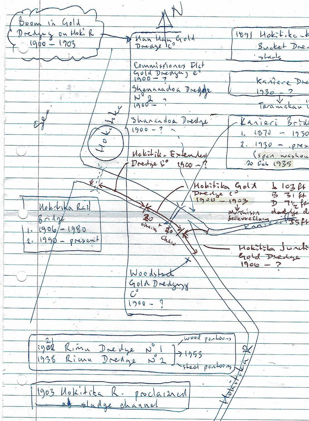 Reference to bridges/dredges - Rimu - Woodstock - Hokitika.