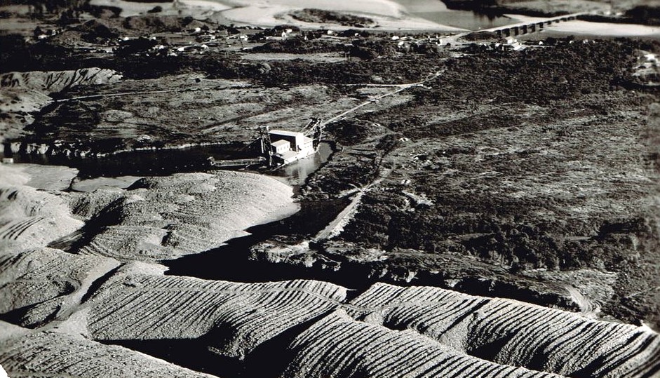 Kaniere Gold Dredge - bridge in the background is to Woodstock, Rimu.