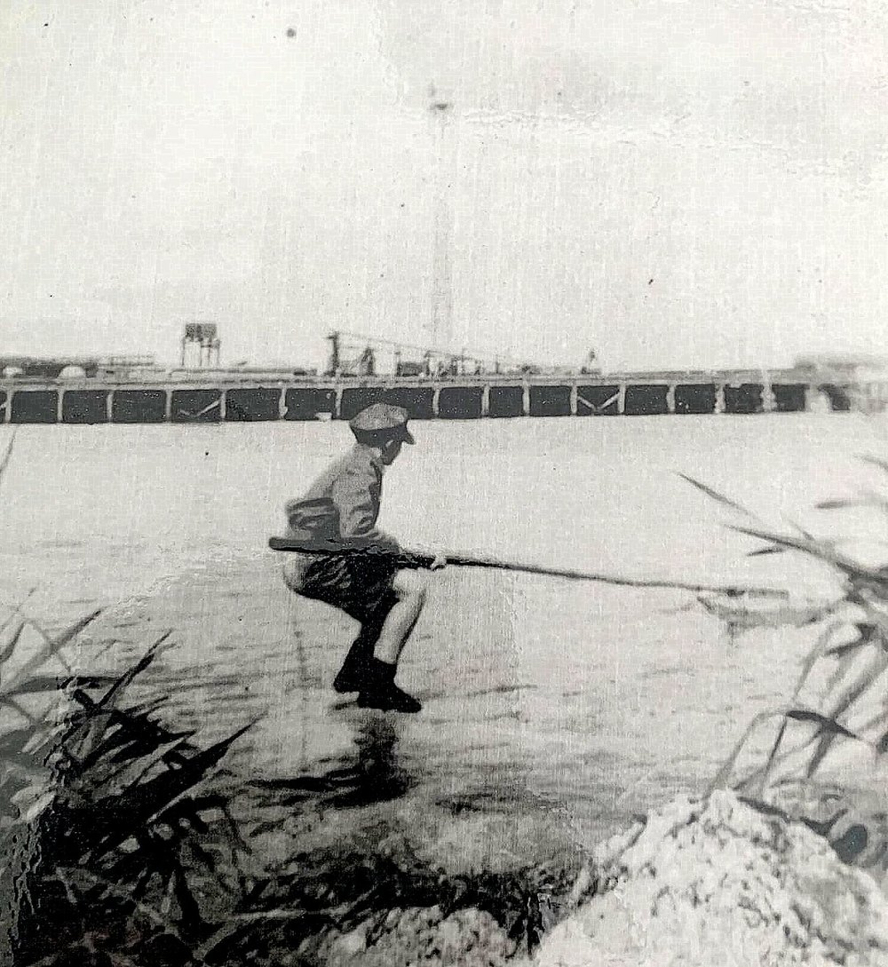 Peter O’Donoghue whitebaitting on the Grey river in the 1940’s.
