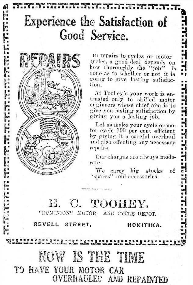 West Coast New Zealand History (3rd Mar 2023). Ted Toohey's Cycle and Motorcycle Repairs Hokitika. In Website West Coast New Zealand History. Retrieved 1st Apr 2026 18:40, from https://westcoast.recollect.co.nz/nodes/view/32045