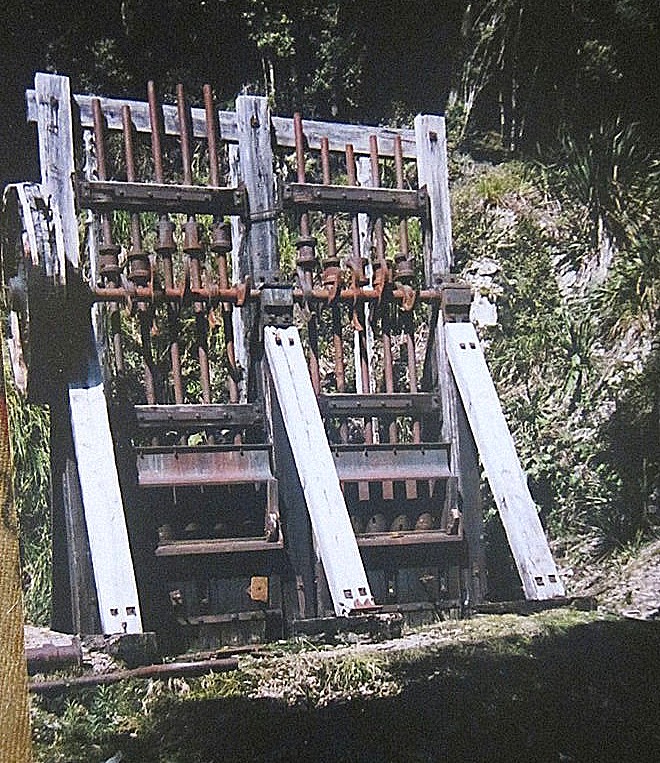 Description Garden Gully Battery, used to crush gold-bearing quartz in Garden Gully during the 1930s. Garden Gully was one of the gold mines along the Croesus Track, west of Blackball. The Garden Gully mine, like most gold mines, was short-lived. It was worked briefly during thew 1930 Depression. The battery was restored by the NZ Forest Service in the 1980s, when they built the new Cec Clarke Hut on the tops above this battery.