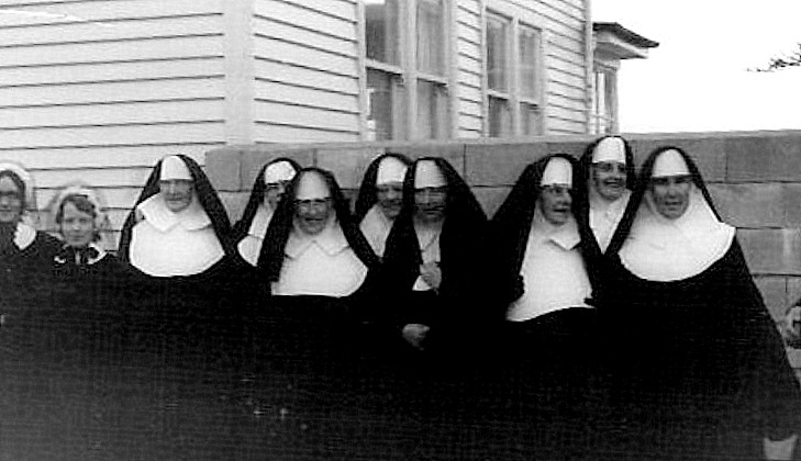 Del Godfrey the "postulants," in the photo were professed Sisters dressed up.