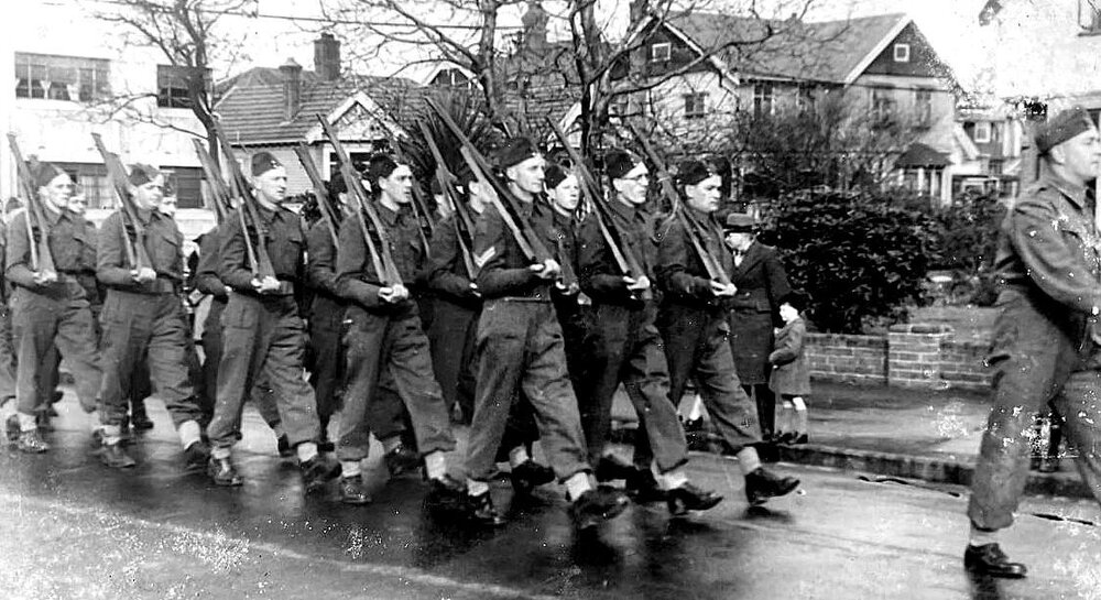 Two West Coast men off to war - Jim Benson, centre front, and Alf Smith on his left.