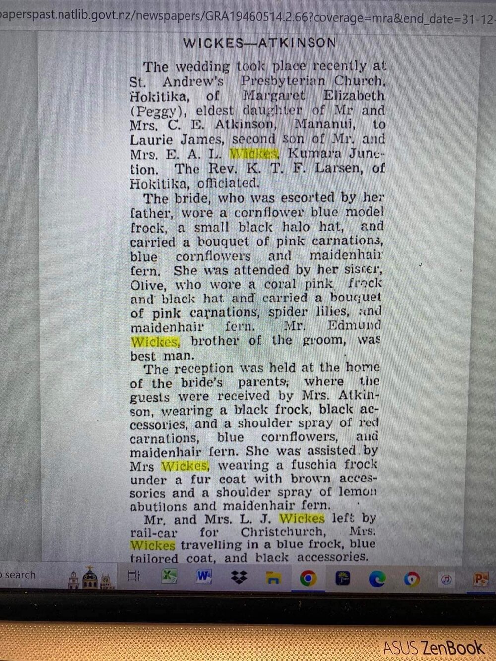 West Coast New Zealand History (3rd May 2023). Margaret Atkinson and Laurie Wickes wedding *PHOTO ALBUM*. In Website West Coast New Zealand History. Retrieved 2nd Apr 2026 04:25, from https://westcoast.recollect.co.nz/nodes/view/32276