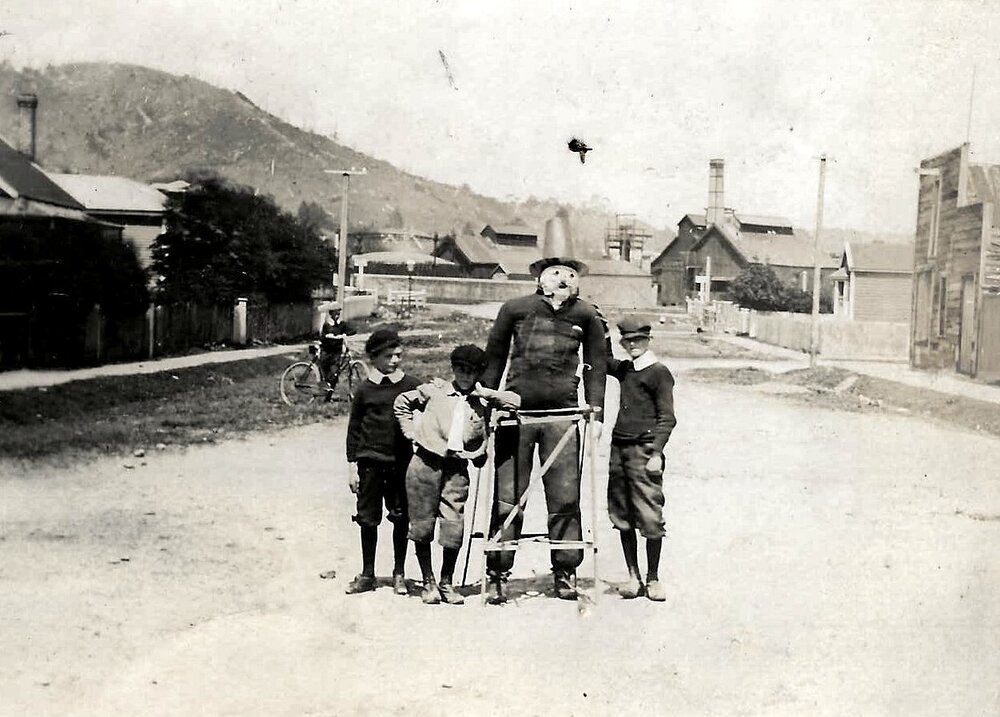 West Coast New Zealand History (12th Feb 2025). "Penny for the Guy", Arnold Parkinson and friends - Guy Fawkes Greymouth .ca .1905.. In Website West Coast New Zealand History. Retrieved 31st Mar 2026 20:05, from https://westcoast.recollect.co.nz/nodes/view/32343