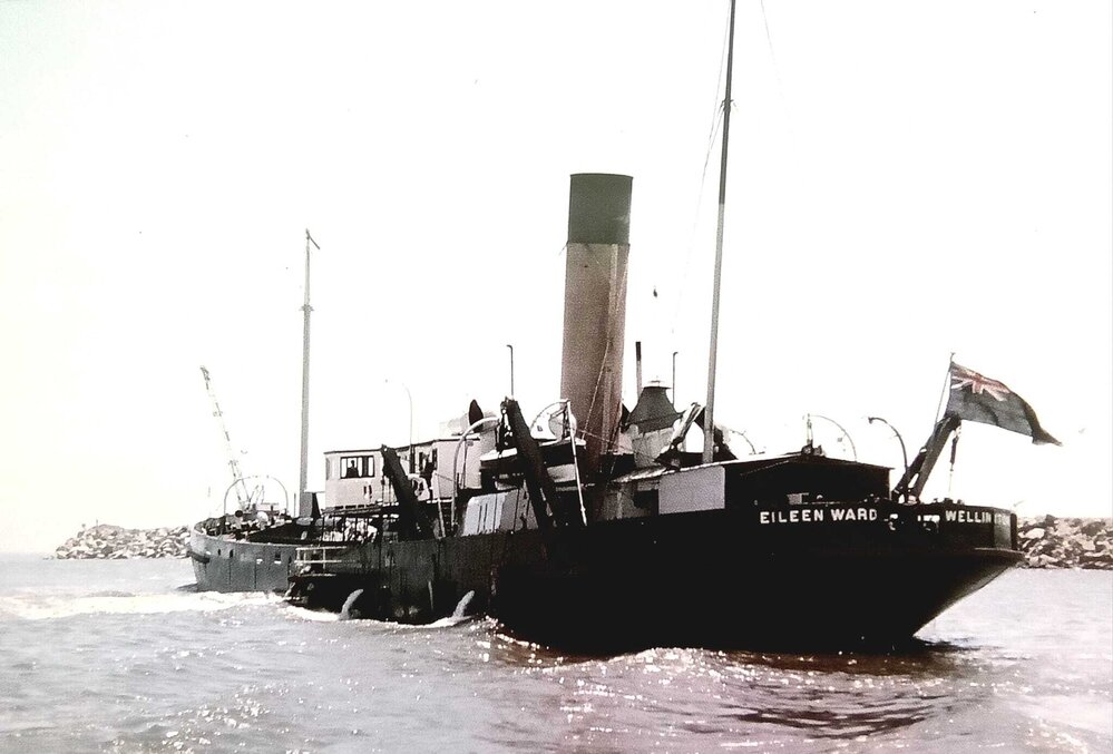 West Coast New Zealand History (8th Jun 2023). The Westport Harbour Board suction dredge Eileen Ward at work by the harbour entrance, 1966. In Website West Coast New Zealand History. Retrieved 31st Mar 2026 18:07, from https://westcoast.recollect.co.nz/nodes/view/32382