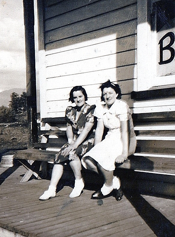 Elsie Dense on left - seated outside the Te Kinga Hotel.1930`s.