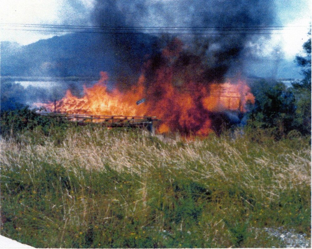 Frank and Ivy Klempel house at Moana being used for fire practice.1970`s.