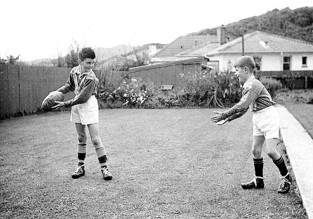 Terry and Desmond O'Leary at 97 Marlborough St,Greymouth.1961.