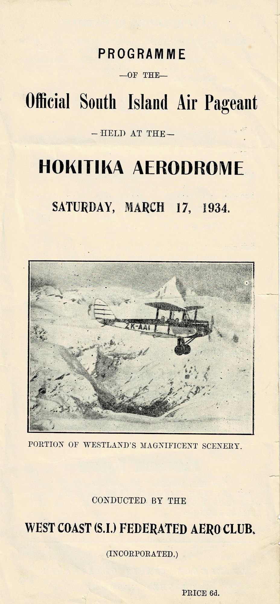 West Coast New Zealand History (6th Nov 2023). ALBUM - Programmme of Official South Island Air Pageant held at Hokitika Aerodrome 1934. In Website West Coast New Zealand History. Retrieved 30th Mar 2026 02:10, from https://westcoast.recollect.co.nz/nodes/view/32936