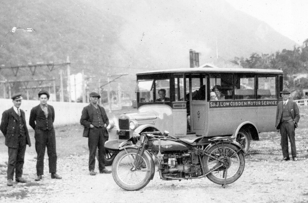 West Coast New Zealand History (23rd Dec 2023). J Low picking up his new bus from the Rail at Otira (with motorbike in foreground). In Website West Coast New Zealand History. Retrieved 29th Mar 2026 16:06, from https://westcoast.recollect.co.nz/nodes/view/33073