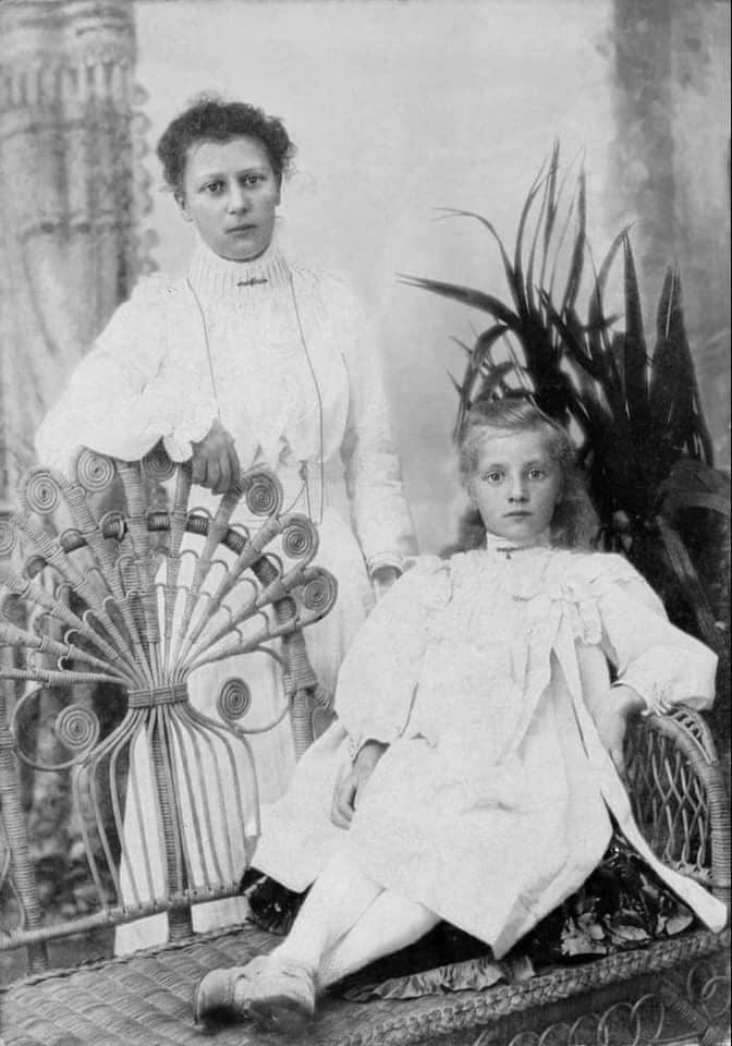 Bessie Gibson (nee Harris) and her daughter Ethel May taken in Westport about 1900