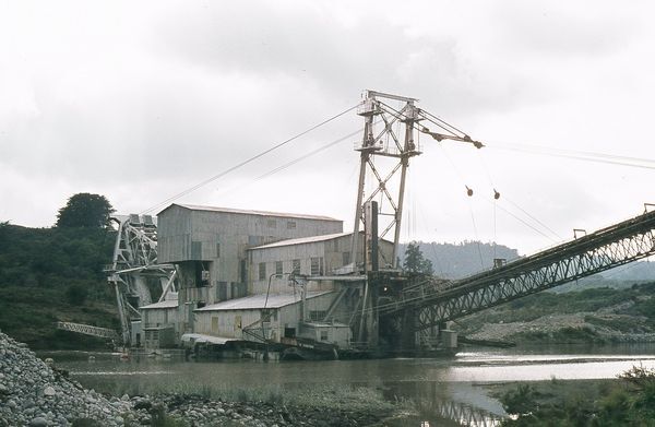 ALBUM - Dredge in the Taramakau River behind Kumara township .