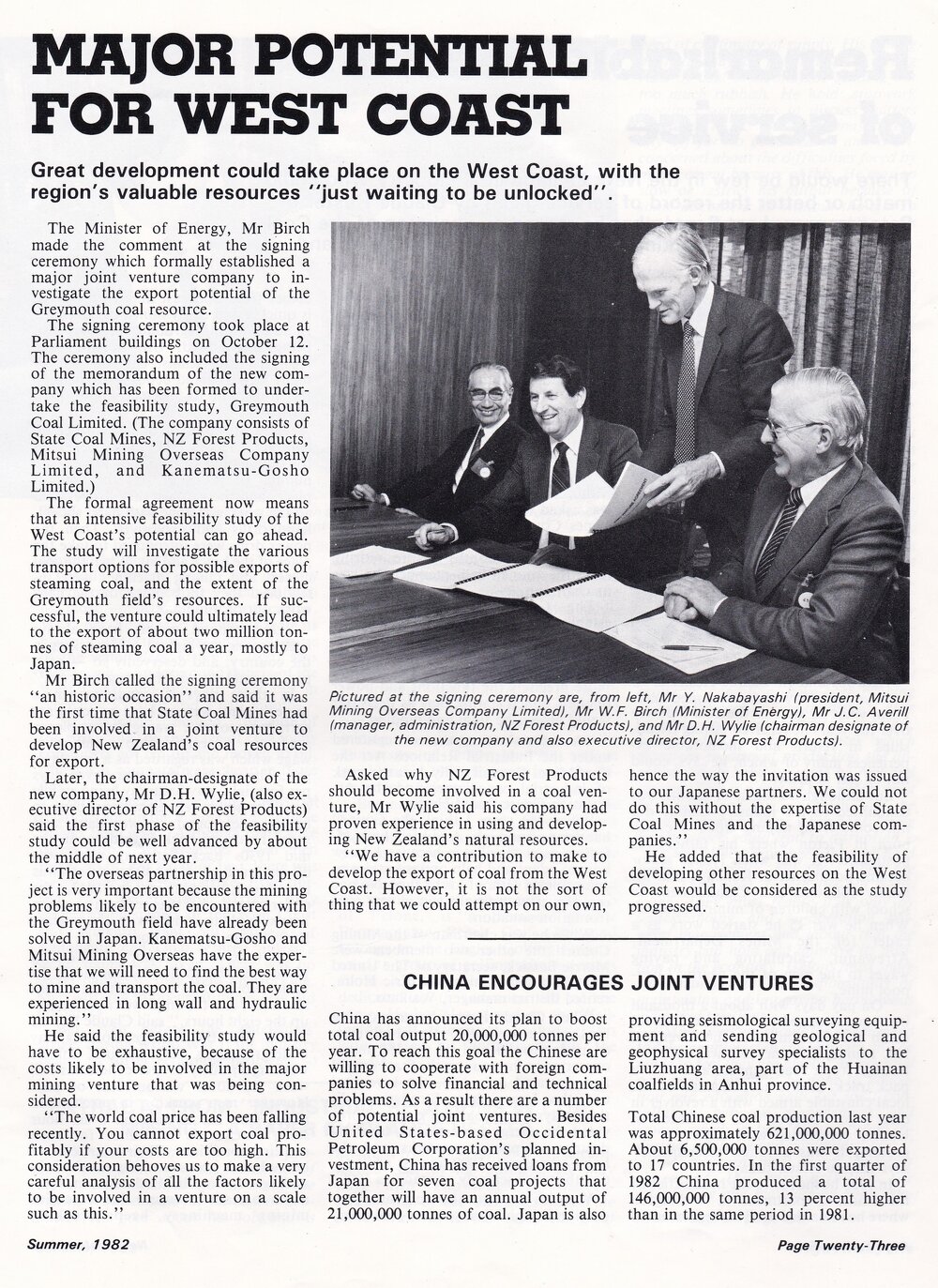 Article from New Zealand Coal magazine Vol 26, No 4, Summer 1982