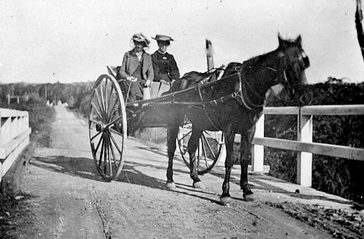 Young Ladies on an outing - Larrys Creek bridge, Reefton Area.1905.