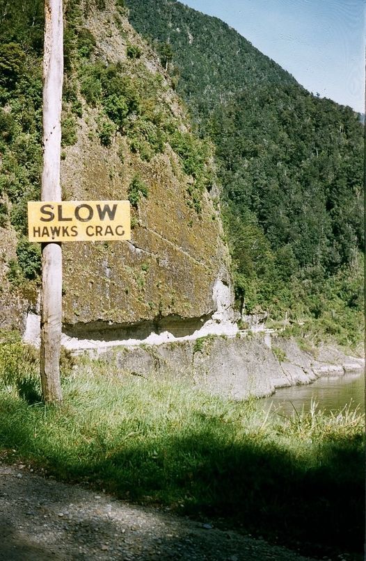 West Coast New Zealand History (4th May 2024). Sign to slow down, Hawks Crag. In Website West Coast New Zealand History. Retrieved 19th Mar 2026 02:21, from https://westcoast.recollect.co.nz/nodes/view/33429