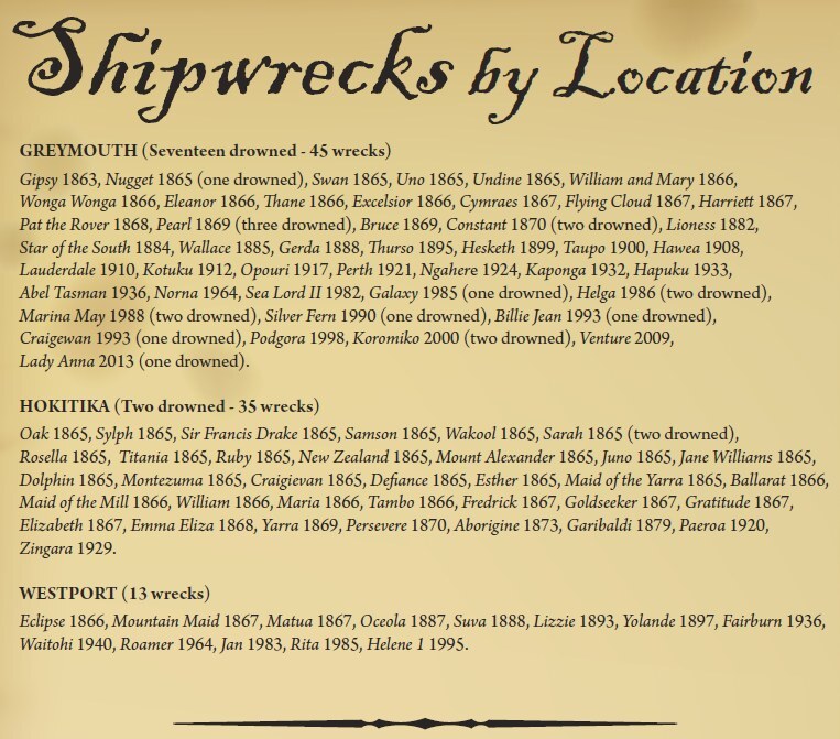 West Coast New Zealand History (14th Apr 2025). Greymouth, Westport and Hokitika shipwrecks by location. In Website West Coast New Zealand History. Retrieved 26th Mar 2026 04:54, from https://westcoast.recollect.co.nz/nodes/view/33436