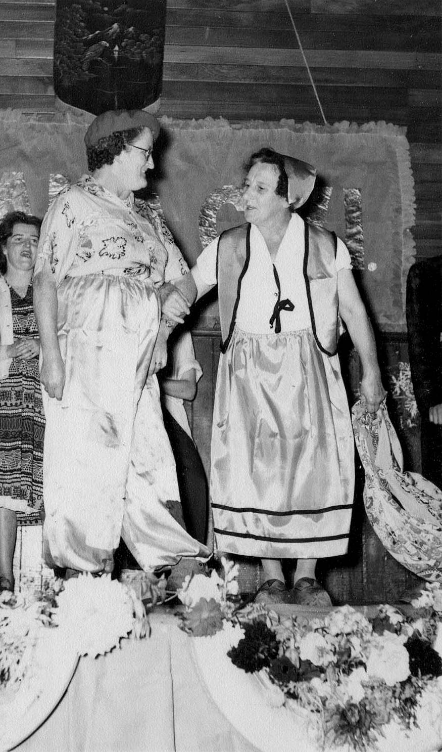 Ivy Klempel,Alice Hocking in the Moana Women`s Institute Play at Moana hall.ca.1940`s.