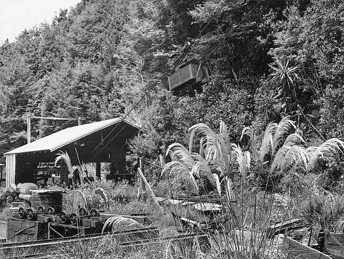 The aerial at Paparoa Mine - Coal is carried from the Paparoa mine mouth to the Middle-brake by aerial ropeway.