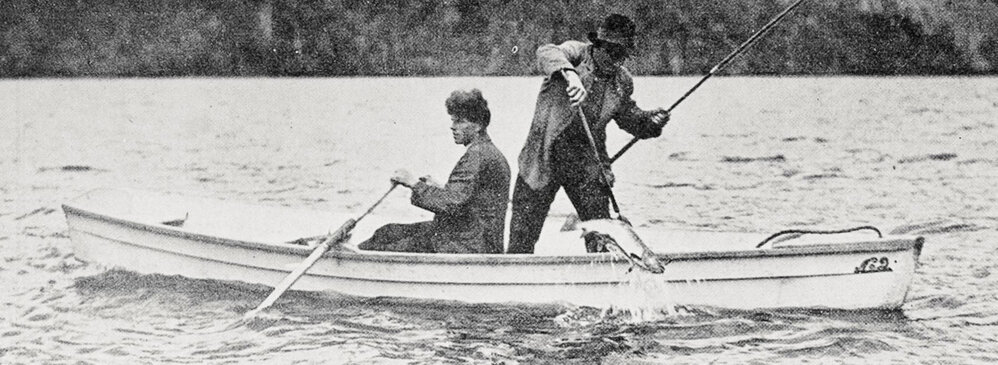 Brown trout fishing on Lake Kanieri - landing a seven-pounder,1922.