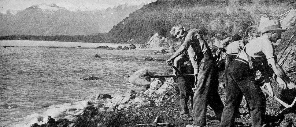 West Coast New Zealand History (15th Jul 2024). Clearing along the foreshore for the access road to Jackson Bay. 1938.. In Website West Coast New Zealand History. Retrieved 25th Mar 2026 12:53, from https://westcoast.recollect.co.nz/nodes/view/33666