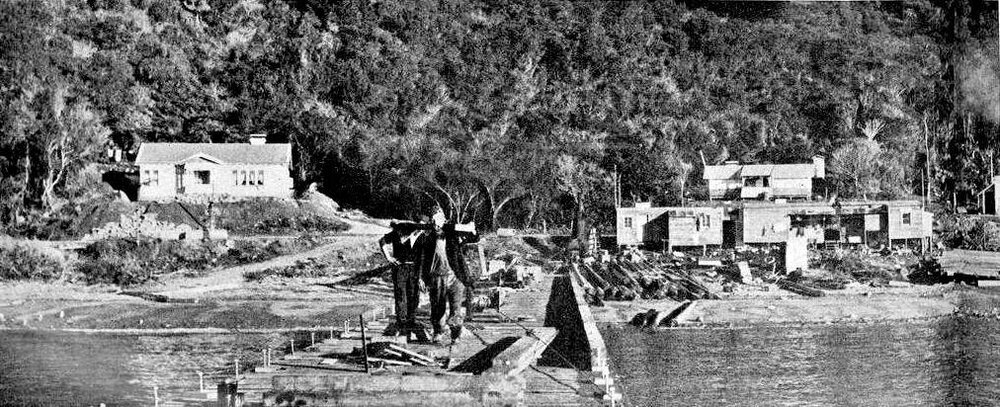 Looking toward the shore from the end of the wharf being built at Jackson Bay.1938.bay.