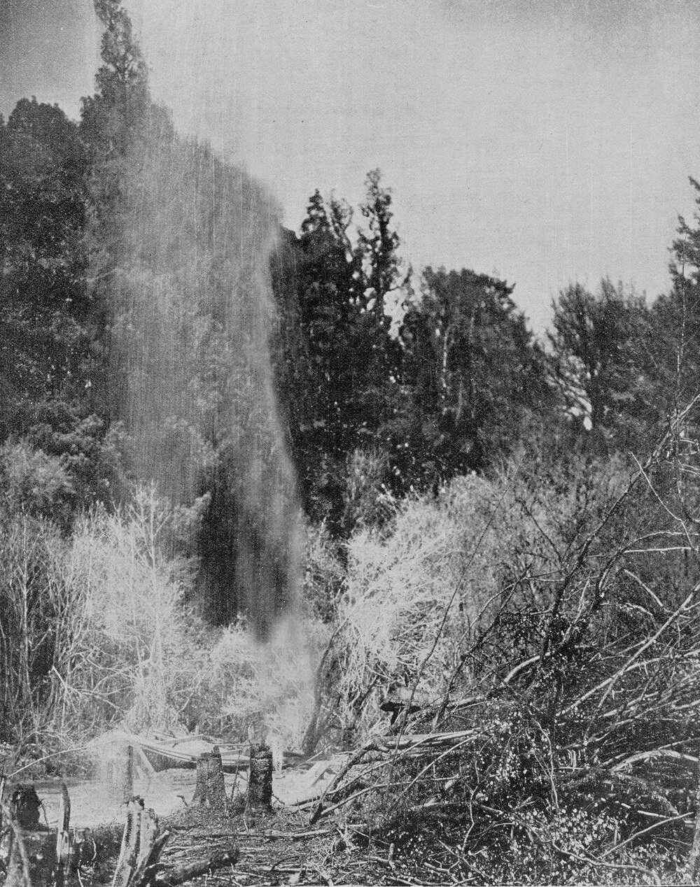 A 'gusher' of water tapped in boring for oil at Kotuku.1903.