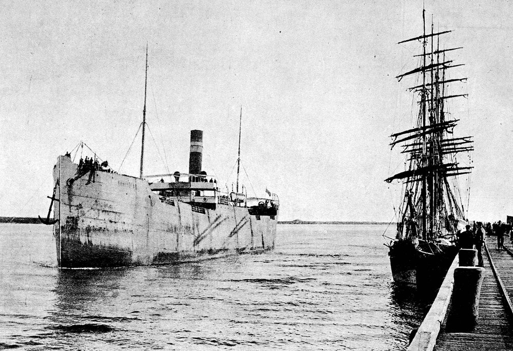 West Coast New Zealand History (11th Aug 2024). The big collier Steamer 'Breconsire' on the Buller River coming alongside to load coal for overseas markets.Westport.1907.. In Website West Coast New Zealand History. Retrieved 25th Mar 2026 05:34, from https://westcoast.recollect.co.nz/nodes/view/33769