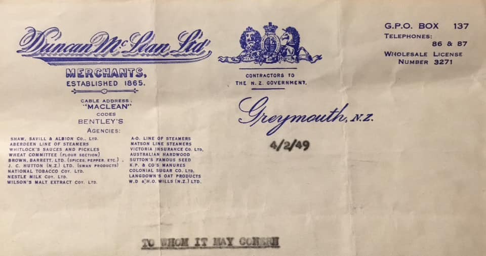 West Coast New Zealand History (17th Sep 2024). Duncan McLean Ltd Greymouth - letterhead .1949. . In Website West Coast New Zealand History. Retrieved 24th Mar 2026 09:23, from https://westcoast.recollect.co.nz/nodes/view/34016