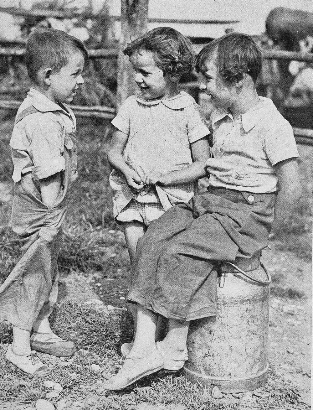 Christmas on the farm - children discussing the prospects of Santa Claus' visit on a farm at Inchbonnie.1938.