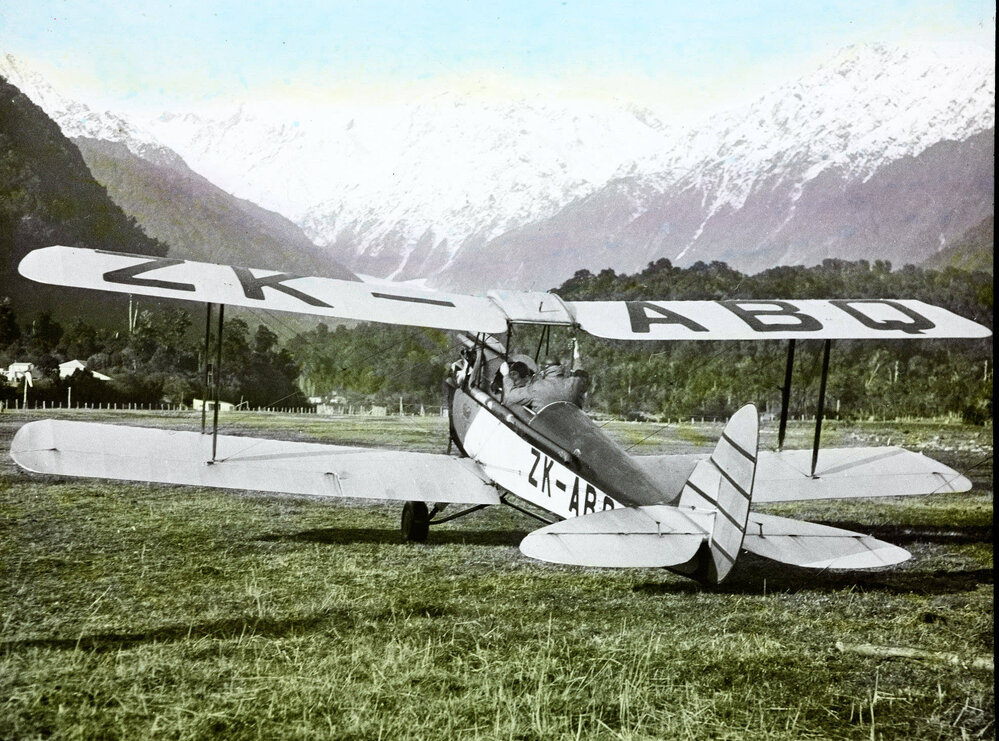 West Coast New Zealand History (24th Sep 2024). A Gipsy Moth biplane (ZK-ABQ) at Waiho ,Westland.1930`s.. In Website West Coast New Zealand History. Retrieved 24th Mar 2026 07:41, from https://westcoast.recollect.co.nz/nodes/view/34036
