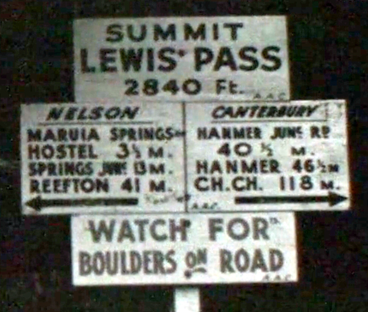 West Coast New Zealand History (30th Sep 2024). Summit of Lewis Pass signage, 1954.. In Website West Coast New Zealand History. Retrieved 24th Mar 2026 05:55, from https://westcoast.recollect.co.nz/nodes/view/34057