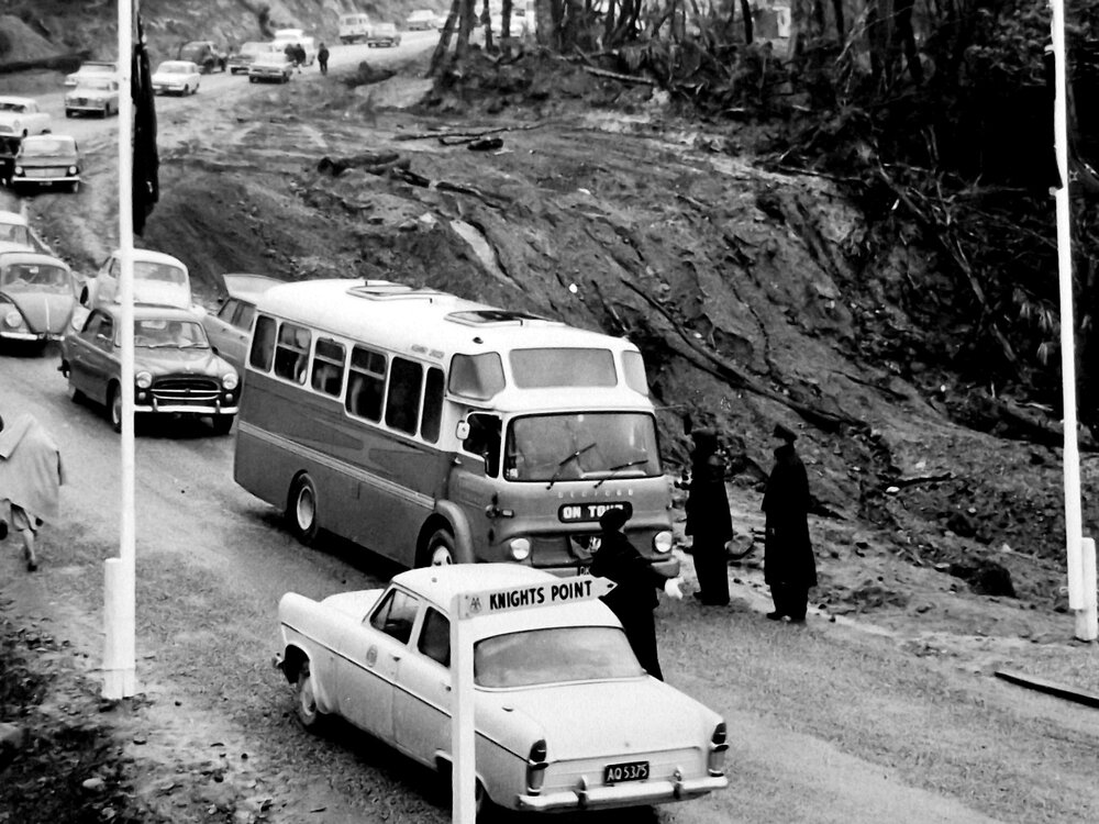 Haast Pass opening day - first coach through was Turnbull's from Dunedin.1965-11-06.