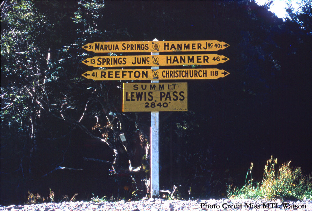 West Coast New Zealand History (25th Dec 2024). Right on the "border" - The Lewis Pass summit road sign, taken approx. 1962.. In Website West Coast New Zealand History. Retrieved 23rd Mar 2026 08:43, from https://westcoast.recollect.co.nz/nodes/view/34350