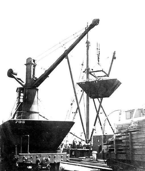 HYDRAULIC CRANE - Loads 500 Ton of coal per hour. PORT of GREYMOUTH .1920's.