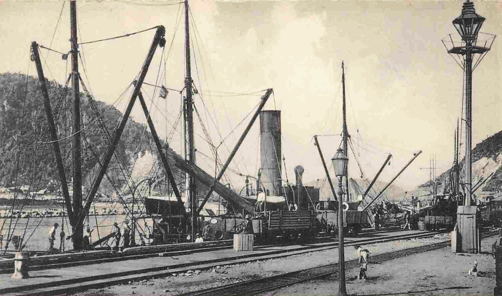 West Coast New Zealand History (24th Jul 2025). LOADING TIMBER. GREYMOUTH PORT. Note the two gas lights in foreground.. In Website West Coast New Zealand History. Retrieved 21st Mar 2026 11:15, from https://westcoast.recollect.co.nz/nodes/view/34999