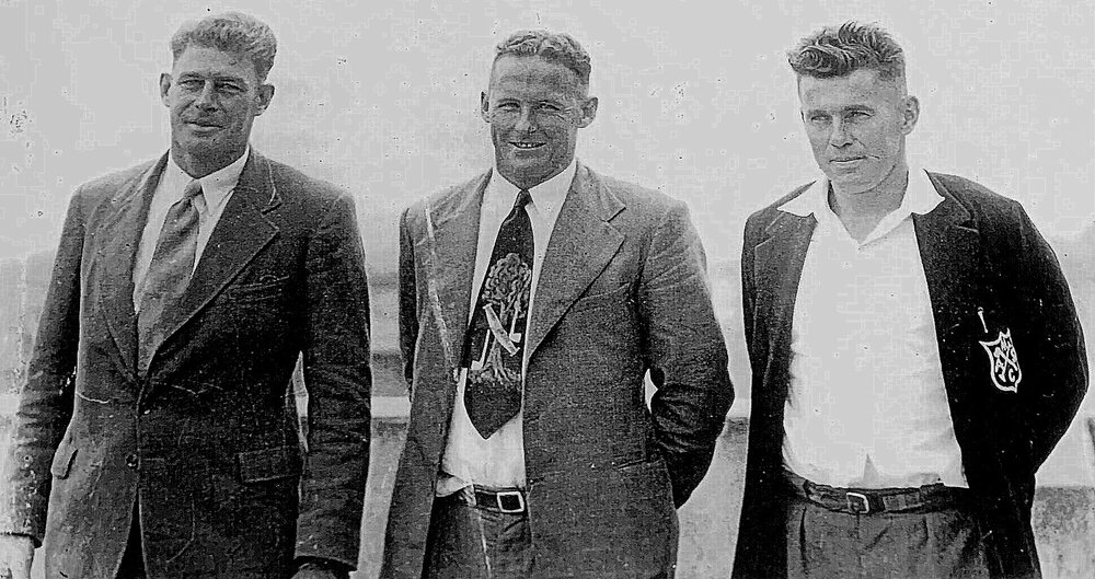 Afton Blackadder, Alan Rose and John Creighton all from Maruia - chopping team representing NZ in Australia.