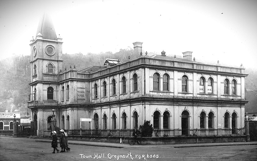 West Coast New Zealand History (4th Aug 2025). TOWN HALL GREYMOUTH - Built 1905, Burnt down 1947.. In Website West Coast New Zealand History. Retrieved 21st Mar 2026 09:31, from https://westcoast.recollect.co.nz/nodes/view/35039