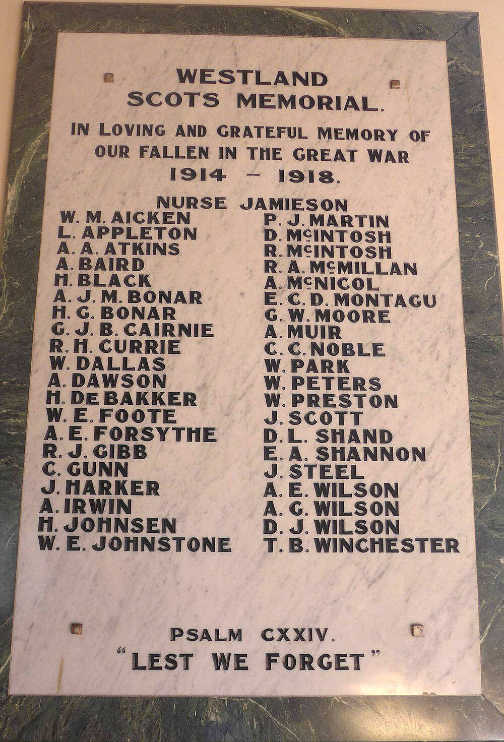 West Coast New Zealand History (12th Aug 2025). 'Westland Scots Memorial', was unveiled inside Scots Memorial Church, Hokitika.. In Website West Coast New Zealand History. Retrieved 21st Mar 2026 06:13, from https://westcoast.recollect.co.nz/nodes/view/35077