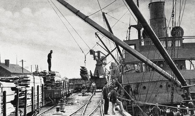 The Gabriela loading Kahikitea at Greymouth for Australia.1935.