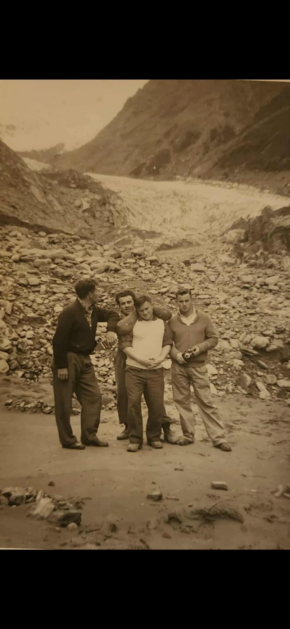 West Coast New Zealand History (12th Nov 2025). John Ryan, Bob McLean, Dan O'Brien and ? at Fox Glacier. In Website West Coast New Zealand History. Retrieved 19th Mar 2026 18:47, from https://westcoast.recollect.co.nz/nodes/view/35543