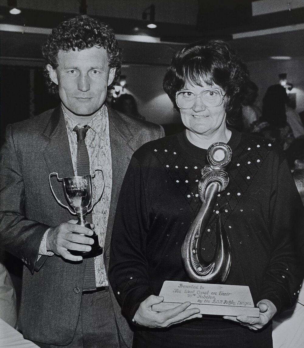 Tony Kokshoorn with Helen Brennan - West Coast Rugby League Administrators of the year-1992.