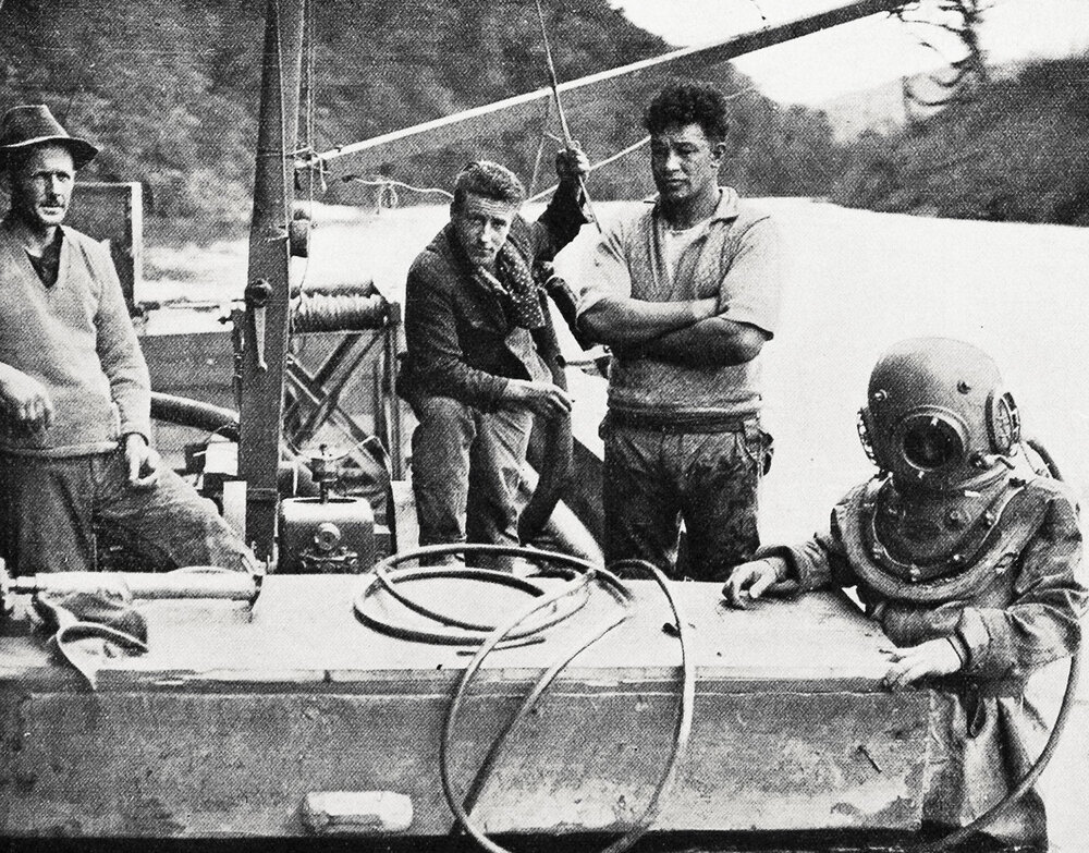 West Coast New Zealand History (7th Mar 2026). Unique method of winning gold - A diver about to descend to the bed of the Maruia River.1932.. In Website West Coast New Zealand History. Retrieved 19th Mar 2026 00:02, from https://westcoast.recollect.co.nz/nodes/view/35813