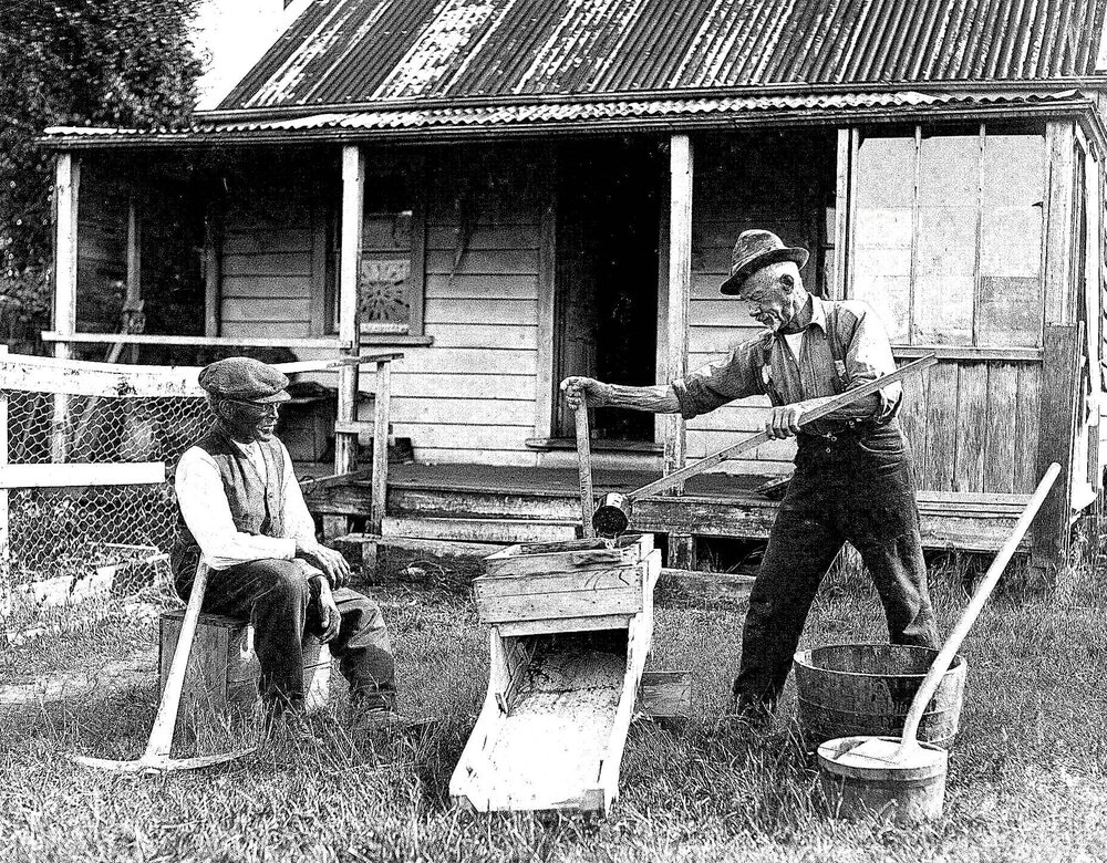 West Coast New Zealand History (3rd Apr 2026). Gold miners in front of their cottage, demonstrating a sluice box.West Coast,1930`s.. In Website West Coast New Zealand History. Retrieved 3rd Apr 2026 17:26, from https://westcoast.recollect.co.nz/nodes/view/35946